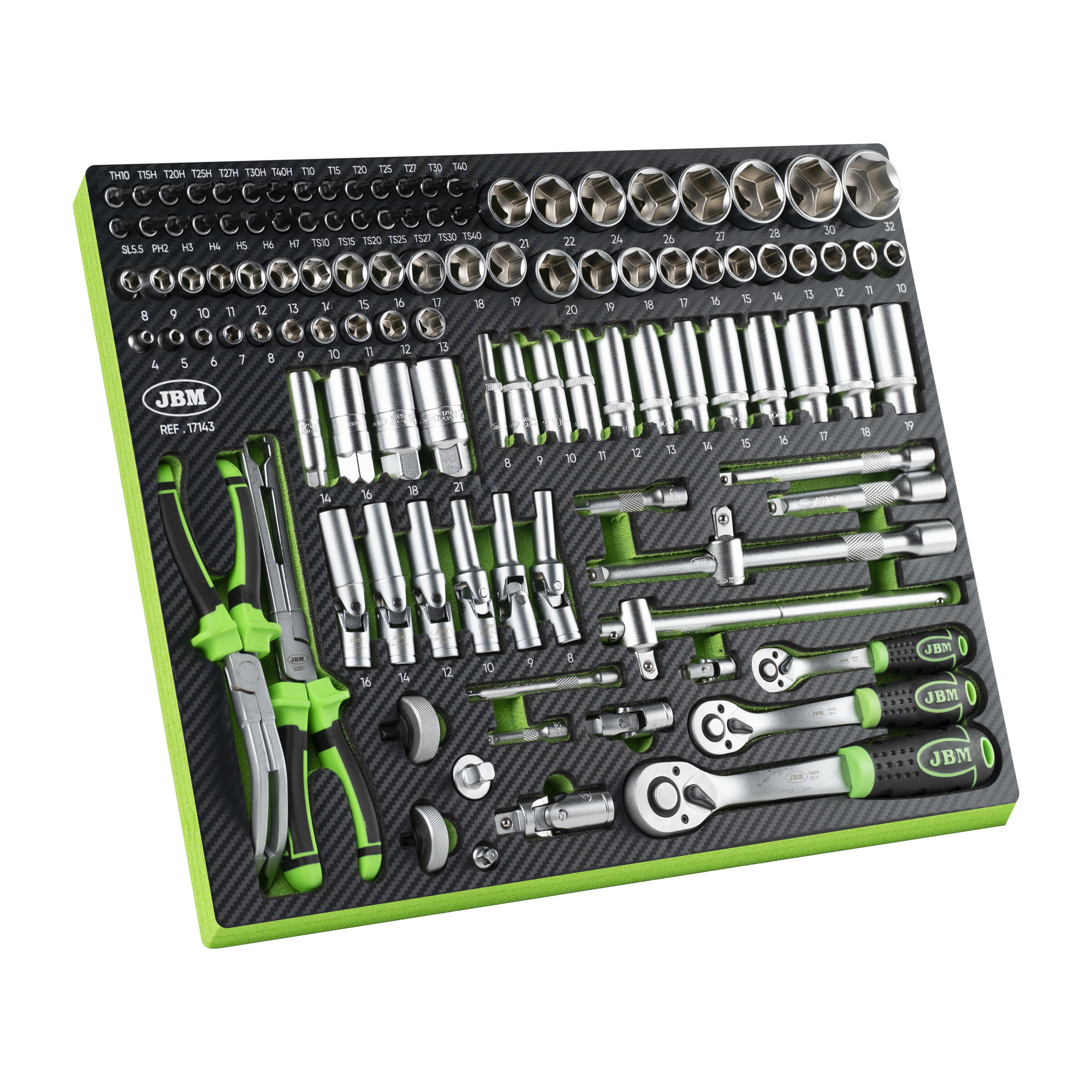 - x17 VASO DE 1/2" HEX. DE 10, 11, 12, 13, 14, 15, 16, 17, 18, 19, 20, 21, 22, 24, 27, 30, 32MM.
